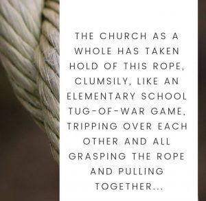 • She heard the break before she actually saw the child who had fallen at the winning end of a tug-of-war rope.