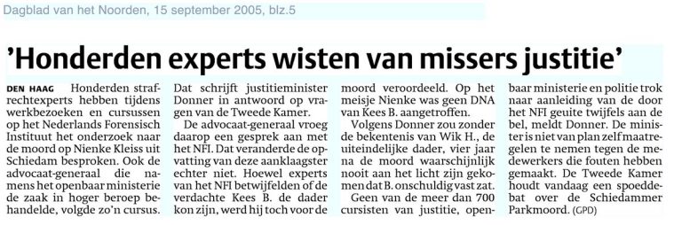 In 2005, the Board of Procurators General set up an investigation committee led by Advocate General Frits Posthumus to critically evaluate the work of the police, the judiciary and the judiciary.