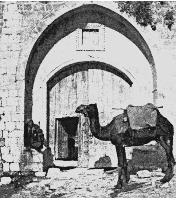 The photo above of a similar gate in Nazareth illutrates the eye of the needle gate quite well. You can see that a camel could not pass through the gate unless it first had all its baggage removed and then stooped to get through the gate.