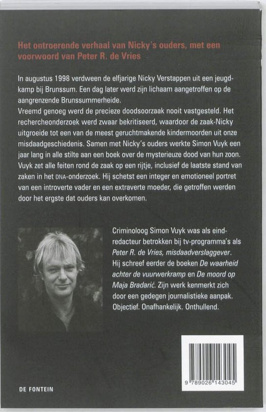 Ewout Genemans volgt de rechercheurs en Officieren van Justitie tijdens het onderzoek naar de dood van de 11-jarige Nicky Verstappen tijdens een jeugdkamp op de Brunsummerheide in 1998. Een unieke inkijk in een recherchezaak die een kant belicht van een zaak die we allemaal kennen, maar nog niet op deze manier hebben gezien.