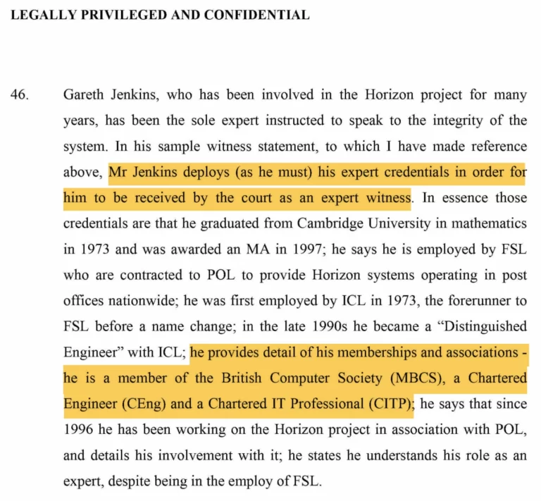 This Distinguished Engineer, this technical wizard, this “god” did not seem able to accept how badly he, Fujitsu and the Post Office had messed things up. He does, however, have a maths degree from Cambridge. We found out today he was not and never has been a Chief Architect of Horizon, nor has he ever been Fujitsu’s Lead Engineer on Horizon. In terms of his career, Jenkins joined ICL (which later became part of Fujitsu) on graduating in 1973 and in the 1990s was recognised as a Distinguished Engineer, an honorific title bestowed on him by Fujitsu.