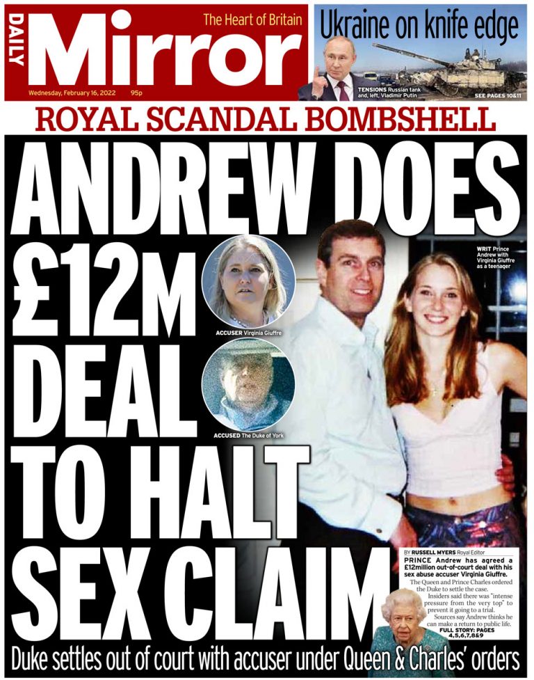 Out-of-Court Settlement: Prince Andrew reached an out-of-court settlement with Virginia Giuffre, who had accused him of sexually abusing her when she was a minor. The settlement was announced in February 2022.