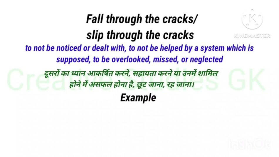 “Slip through the cracks” is an idiomatic expression that refers to something or someone that is overlooked, missed, or ignored due to a failure in a system, process, or procedure. The key points of “slip through the cracks” are: