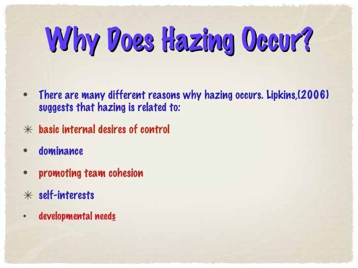 Purpose: Hazing is often used as a rite of passage, a way for groups or organizations to establish power dynamics, maintain tradition, or test the loyalty of new members. However, it is important to note that hazing is harmful and has no place in any educational or social setting.
