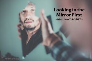 “Why do you look at the speck of sawdust in your brother’s eye and pay no attention to the plank in your own eye? How can you say to your brother, ‘Let me take the speck out of your eye,’ when all the time there is a plank in your own eye? You hypocrite, first take the plank out of your own eye, and then you will see clearly to remove the speck from your brother’s eye.